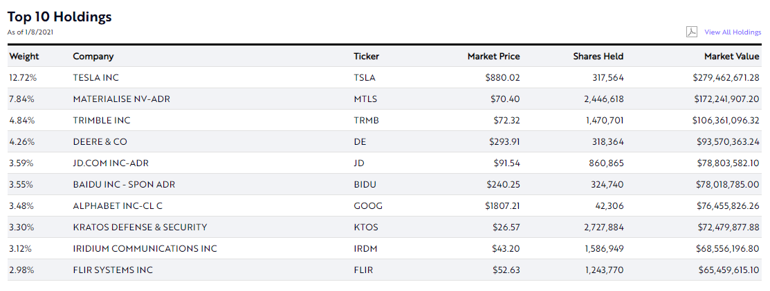 자동화, 로봇공학 테마로 이루어진 ETF