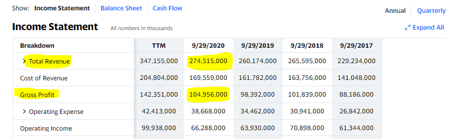 우측상단 Annual (년도별) 이니까. 20년기준으로 (104,956,000/274,515,000) * 100 = 38.23%