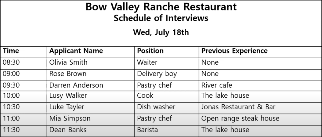 You will interview Darren Anderson for Pastry chef at 9:30 A.M.