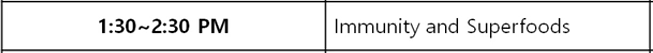 3. There will be a course on Immunity and Superfoods from 1:30 to 2:30 P.M.