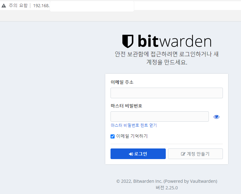 그러면 bitwarden 이라는 로그인 페이지가 뜰 것이다.