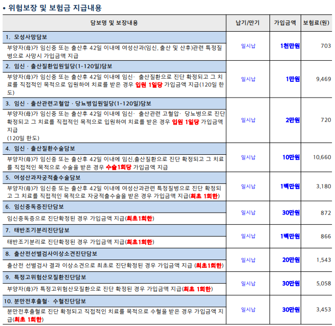 무난하게 출산하면 문제없지않나..? 꼭 이렇게 미리 들어놔야하나..? 생각도 했지만 정리결과 들어야한다.