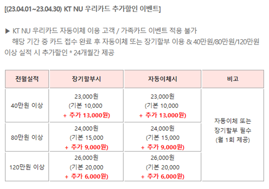 ▶ KT NU 우리카드를 발급 먼저 하지 말고 프로모션중인 카드 먼저 발급해서 사용