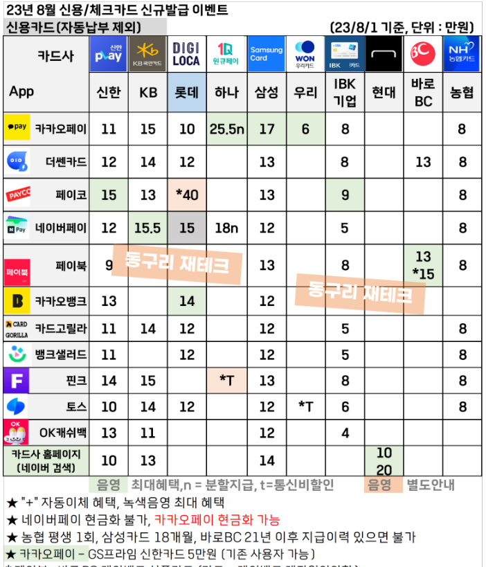 23년 8월 신용카드 프로모션 (동구리 재테크)
