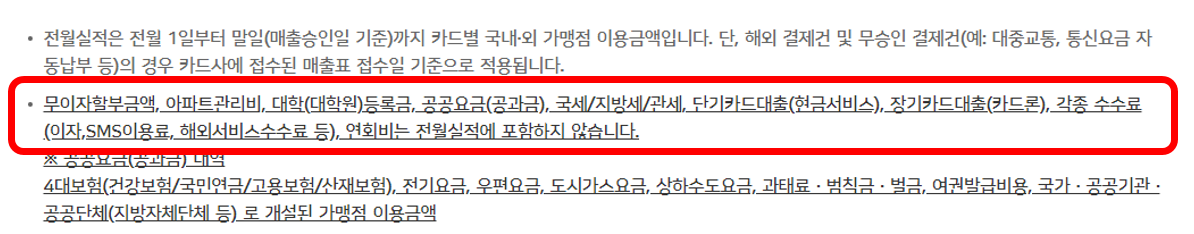 전월 실적 40만원 이상 이용 시 10,000원 할인... 이면