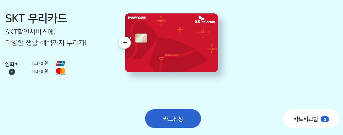 [상테크 카드추천] 월 1만원 / SKT 우리카드 2023년 04월 22일 📈 Economy/카드 1. 상품명 SKT 우리카드 2. 연회비 10,000 원 3. 혜택 30만원 이상 사용 시 10,000원 할인 (통신료 자동납부는 무시) 그 외 * 전국 영화관 3천원 청구할인 통합 월1회, 연 10회 제공, 1회 12,000원 이상 결제 시 할인* VIPS, TGIF 10% 청구할인 통합 일 1회, 월 2회, 건당 1만원까지 할인* 할리스, 엔제리너스 20% 청구할인 통합 일 1회, 월 2회, 건당 5천원까지 할인* 롯데월드, 에버랜드, 서울랜드, 이월드(대구), 경주월드, 통도환타지아 자유이용권 50% 현장할인 통합 월 1회, 연 10회, 본인한정 4. 실적 예외 사..상품권이 없다는 뜻은? 5. 활용방법 1. 상품권 6장 구매 (46,100 x 6 = 276,600) 2. 상품권 구매하고 남은 차액(약 2.4만)을 실사용해서 30만원 실적 채우기 (실사용하던가, 상품권 3만원짜리 사거나, 실비보험 같은걸로 자동이체 해놔서 메꾸거나 등등) 6. 기타 * 자동납부 상관없다함 ! 상품권 구매만으로 만원 할인 !혹시 우리카드를 처음 이용해본다면? ▶ 아래 표 참고해서 프로모션 신용카드 먼저 발급 후 발급 (프로모션 카드 조건들은 지난 1년 등 사용한 이력이 없어야 함으로) 공유하기 게시글 관리 생각의 전환 저작자표시 (새창열림) 글이 도움이 되셨다면 공감과 광고 클릭 한번 부탁드립니다! 💕 감사합니다 ✨ 댓글 공유하기 다른 글 댓글 이 글 공유하기 구독하기 구독하기 카카오톡 카카오톡 라인 라인 트위터 트위터 Facebook Facebook 카카오스토리 카카오스토리 밴드 밴드 네이버 블로그 네이버 블로그 Pocket Pocket Evernote Evernote 다른 글 [카카오뱅크 신한카드 짭모아 실적채우기 1] 휴대폰 요금 분할납부 활용하기 [카카오뱅크 신한카드 짭모아 실적채우기 1] 휴대폰 요금 분할납부 활용하기 2023.05.10 [상테크 카드추천] 월 4만원 / 쿠팡 롯데카드 / 쿠팡 실 사용 혜택 (단종) [상테크 카드추천] 월 4만원 / 쿠팡 롯데카드 / 쿠팡 실 사용 혜택 (단종) 2023.04.23 [상테크 카드추천] 월 1.7만원 / 24개월 할인 / SK 세븐모바일 라서즐거운카드 (~5/31) [상테크 카드추천] 월 1.7만원 / 24개월 할인 / SK 세븐모바일 라서즐거운카드 (~5/31) 2023.04.22 [실사용 카드추천] 실사용 월 20만 / 5% 적립 / KB 톡톡 my point [실사용 카드추천] 실사용 월 20만 / 5% 적립 / KB 톡톡 my point 2023.04.21 다른 글 더 둘러보기