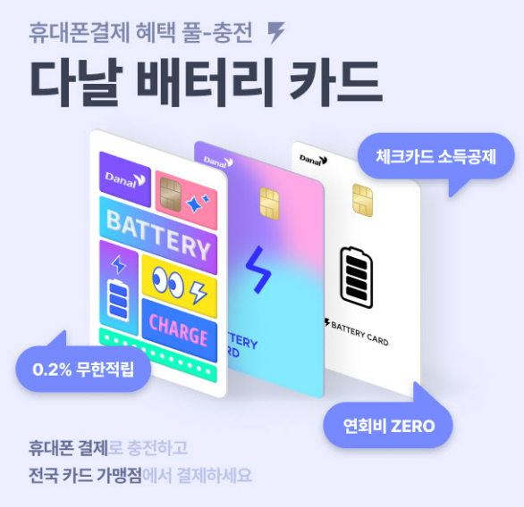 이번에 다날에서 배터리카드라는게 나왔는데 기존 모빌리언스 카드를 잡을라고 출시했다