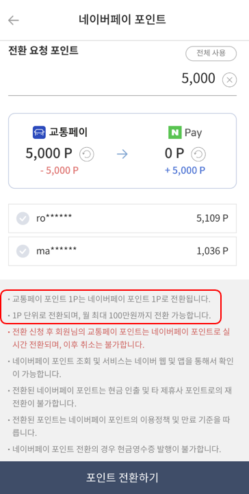 2) 활용 1. 네이버페이로 전환 (월 100만원 한도)