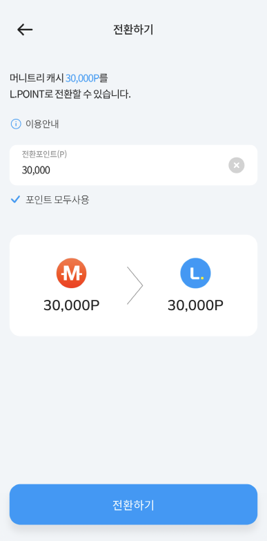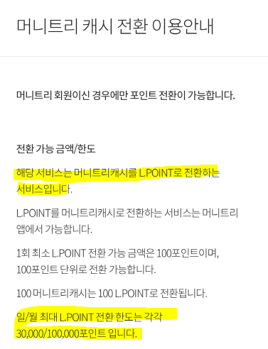 5) 머니트리 통해 L.Point 로 전환 (★수수료 0%★, 10만원 한도)