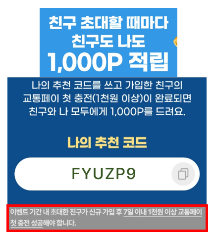 7일 이내 "교통페이" 에 천원 이상 충전하면