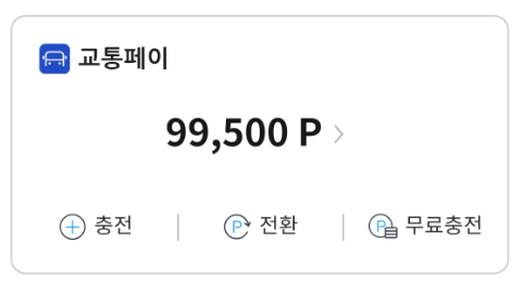 일단 캐시비 or 티머니의 현금화를 하기 위해서는 교통페이라고 댐댐 앱 내에서 취급하는 캐시(?) 인데 일단 여기까지 전환시켜 놔야 네이버페이를 바꾸던.. 현금화를 하러가던가 할 수 있다