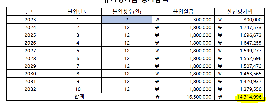2. 유기정기금명세서(2) 에 년도랑 불입회수 1년차꺼 파랑색, 증여자관계 수정해야했음