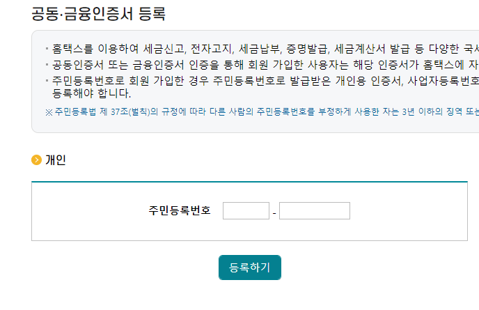 로그인 하면 인증서 등록하라고 함. 나는 증권사 자녀계좌 만들 때 인증서 만들어놓은게 있어서