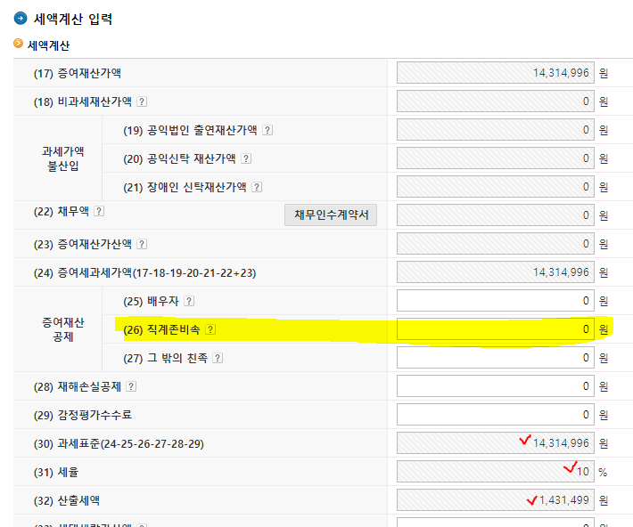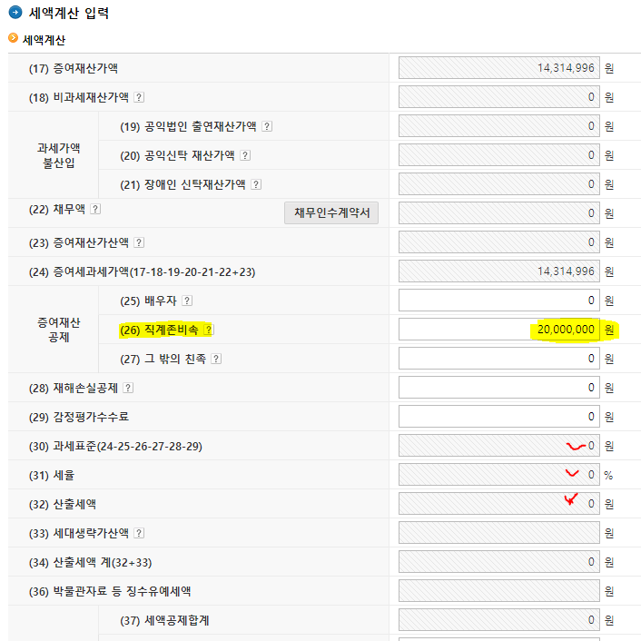 원래 직계존비속 0원으로 나오는데