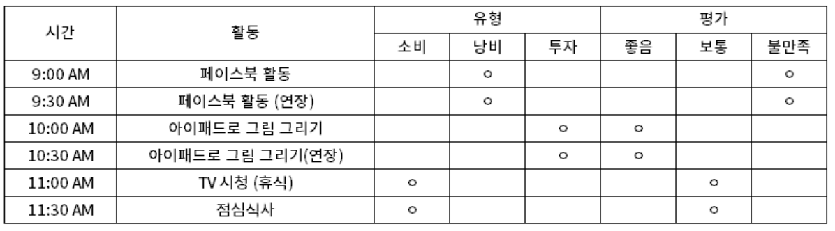 시간 가계부 예시