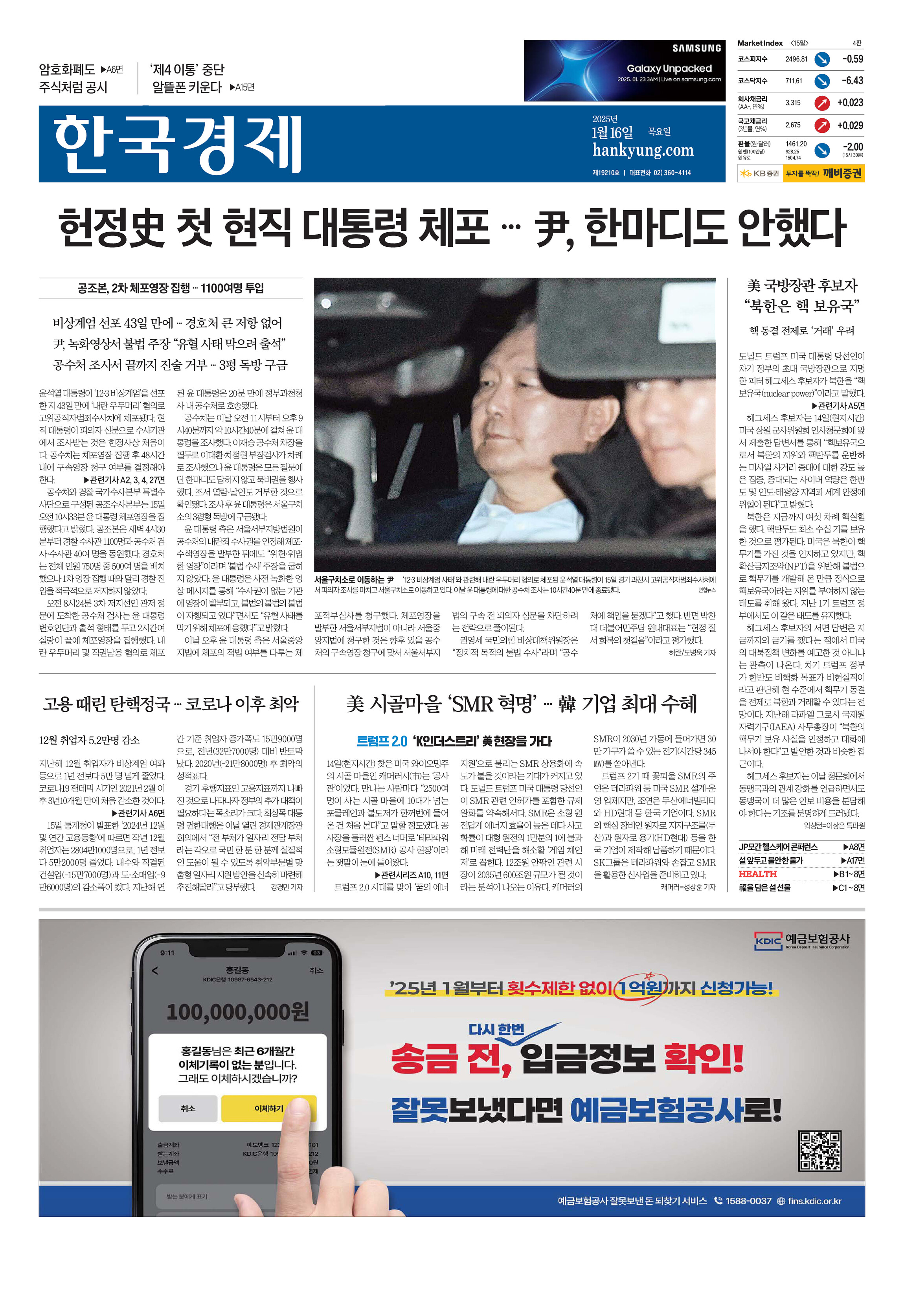 윤석열 대통령이 ‘12·3 비상계엄’을 선포한 지 43일 만에 ‘내란 우두머리’ 혐의로 고위공직자범죄수사처에 체포됐다. 현직 대통령이 피의자 신분으로 수사기관에서 조사받는 것은 헌정사상 처음이다. 공수처는 체포영장 집행 후 48시간 내에 구속영장 청구 여부를 결정해야 한다.