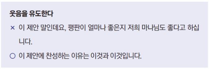✅ 상사에게 설명하는 상황 ➡️ 많이 준비하고 한판 승부 요소가 강한 PT와 달리 이런 상황은 원활하게 대화할 수 있는 분위기를 만들어 결론을 도출해야 한다.
