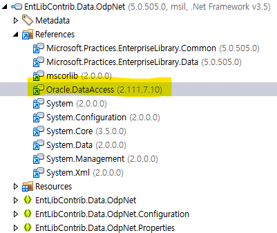 1. EntLibContrib.Data.OdpNet DLL 을 참조하고 있음